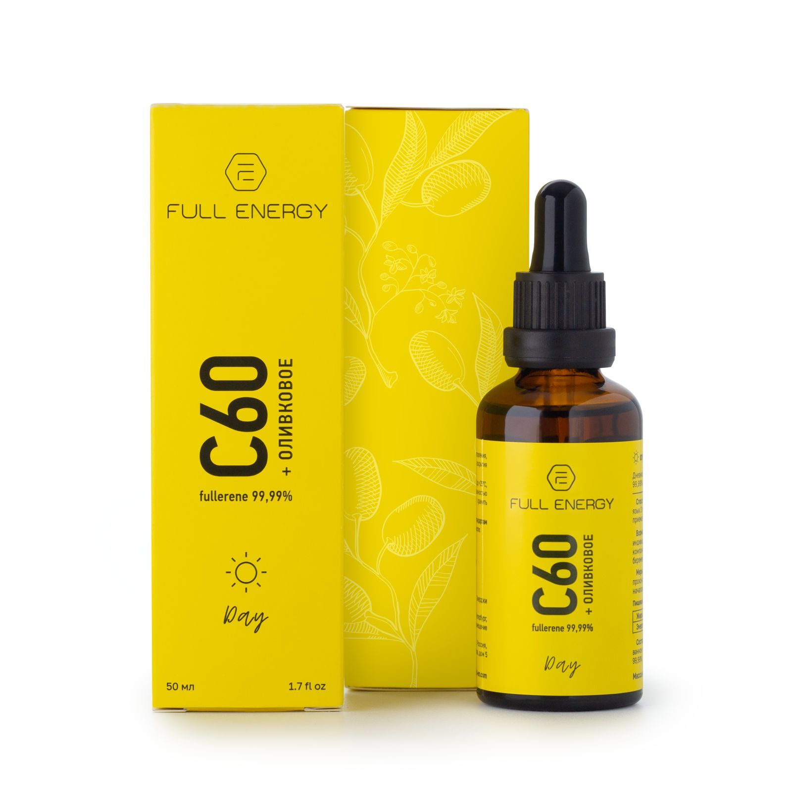 Для производства продукта DAY используется самое полезное нерафинированное оливковое масло первого холодного отжима высочайшего качества (Extra Virgin) и фуллерен С60 исключительного